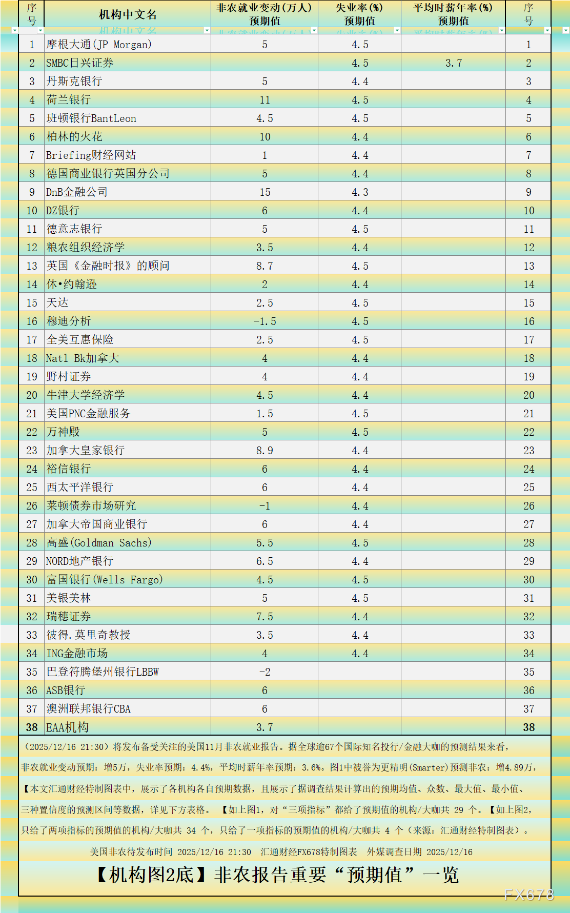 全球逾67个国际知名投行/金融大咖的预测结果来看,非农就业变动预期:增5万,失业率预期:4.4%,平均时薪年率预期:3.6%。